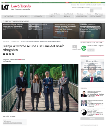 Artículo en Law & Trends: “Juanjo Aizcorbe se une a Milans del Bosch Abogados”