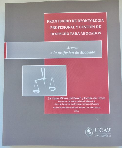 El despacho MILANS DEL BOSCH ABOGADOS ha participado en la actualización 2016 de los temas de “Deontología profesional y gestión de despacho para abogados” y “Cuestiones generales de derecho, el proceso y la asistencia letrada” que integran el programa de acceso a la profesión de Abogado, dentro del máster de acceso a la abogacía que imparte la Universidad Católica de Ávila.