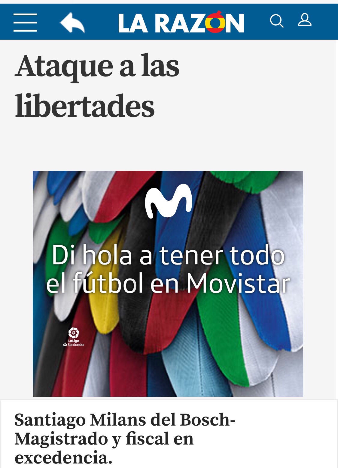 Artículo de nuestro socio director Santiago Milans del Bosch en La Razón: Ataque a las libertades