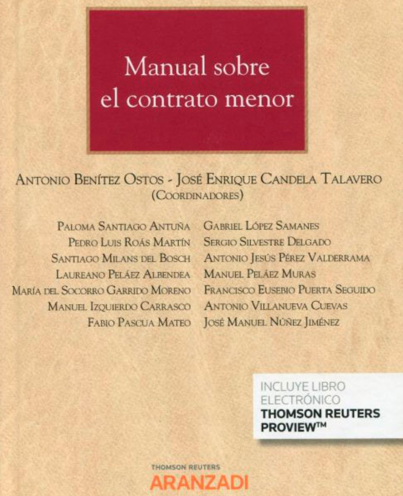 Ya se encuentra a la venta el “Manual sobre el contrato menor”, publicado por Aranzadi como Gran Tratado y coordinado por el abogado especialista en Derecho Administrativo y Contratación Pública Antonio Benítez Ostos y el Doctor en Derecho y Secretario de Administración Local José Enrique Candela Talavero.