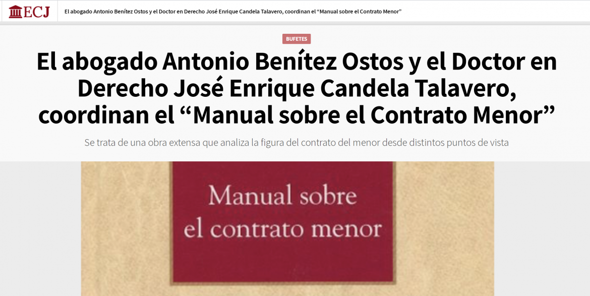 Artículo en Confidencial Judicial: El abogado Antonio Benítez Ostos y el Doctor en Derecho José Enrique Candela Talavero, coordinan el ‘Manual sobre el Contrato Menor’