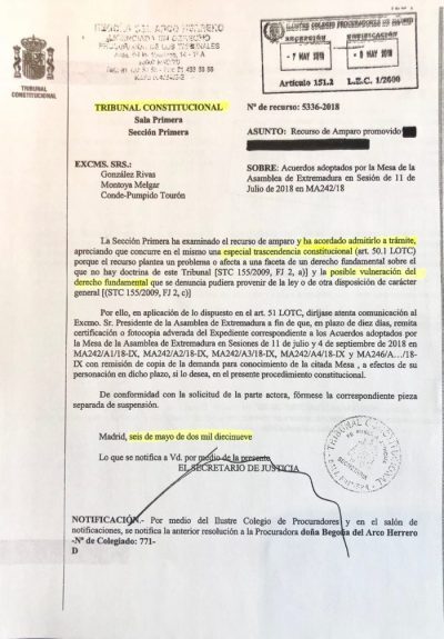 En esta ocasión los actos impugnados son diversos Acuerdos adoptados por la Mesa de la Asamblea de Extremadura el pasado verano que apartaron de su oficio a un diputado regional que venía ejerciendo dicho cargo ininterrumpidamente desde 2011 en representación de los ciudadanos extremeños que le eligieron. Dichos acuerdos no solo le redujeron el sueldo por la vía de denegarle, sin ningún fundamento, el régimen de dedicación exclusiva de todos los demás, que venía teniendo, sino que le privaron de despacho, le dieron un escaño -apartado de los demás diputados regionales- y le limitaron sus actuaciones (iniciativas y debates) al considerarle diputado “no adscrito” desde que decidió darse de baja voluntaria del partido político en cuyo grupo estaba ubicado hasta ese momento.