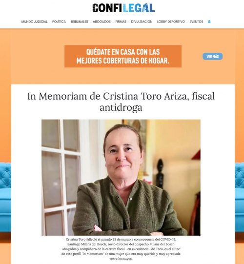 Artículo de nuestro socio director Santiago Milans del Bosch en Confilegal: «In Memoriam de Cristina Toro Ariza, fiscal antidroga»